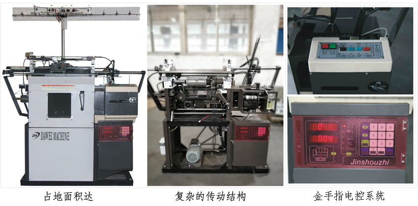 該款機器體積大,機頭大,傳動結(jié)構(gòu)復(fù)雜,電控智能化程度低。因此、生產(chǎn)占地面積大,同樣針距的機器,生產(chǎn)效率相對于智能手套機要低20%-30%,并且機器的維修率高,耗電多。