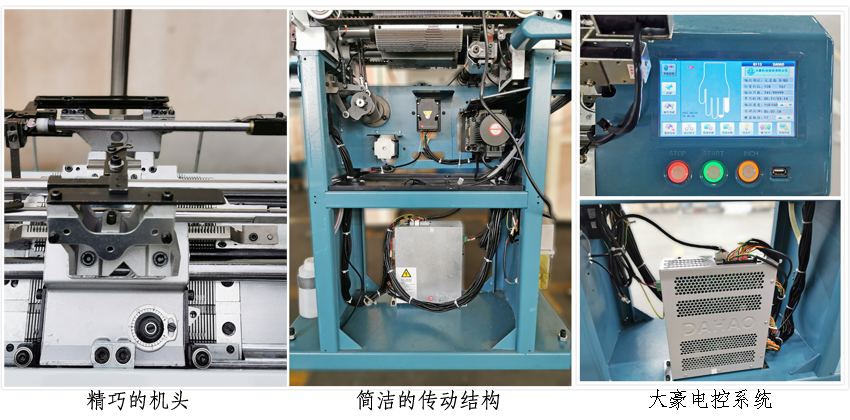 機(jī)器外形簡潔、輕巧,生產(chǎn)占地面積小。采用的小機(jī)頭設(shè)計(jì),同針距的型號(hào)比老款手套機(jī)的大機(jī)頭小20%,重量輕約35%,配合紗嘴帶動(dòng)輕質(zhì)量的紗線,因此反應(yīng)靈敏,編織高效。所編織的輕薄手套適合于完成精細(xì)的勞動(dòng)崗位,特別是電子產(chǎn)業(yè)的勞動(dòng)手套及作為其它特殊手套的襯底。
